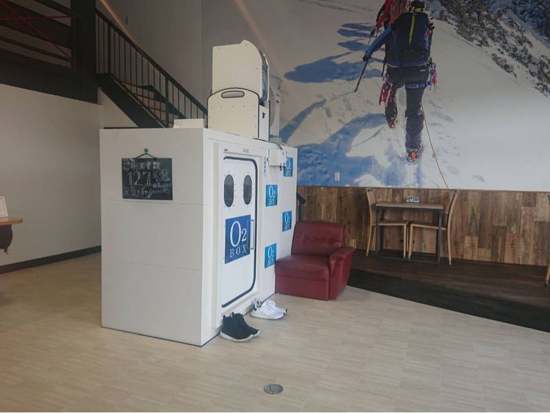 待ち時間に酸素ボックスで身体もメンテナンス出来る。