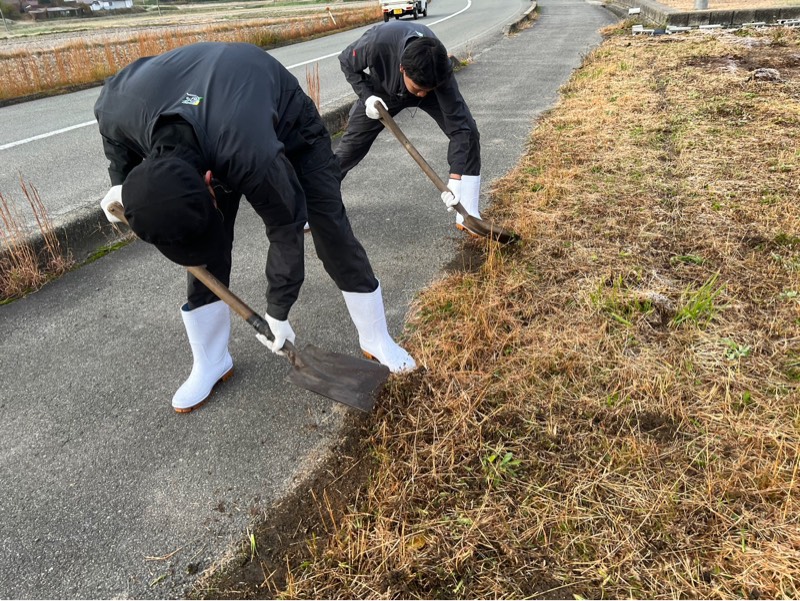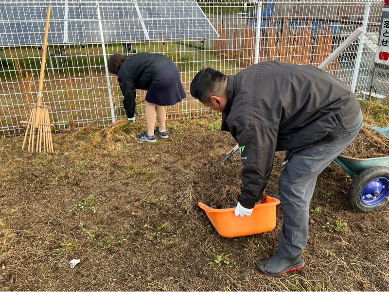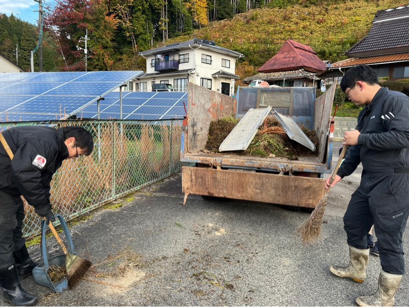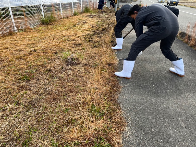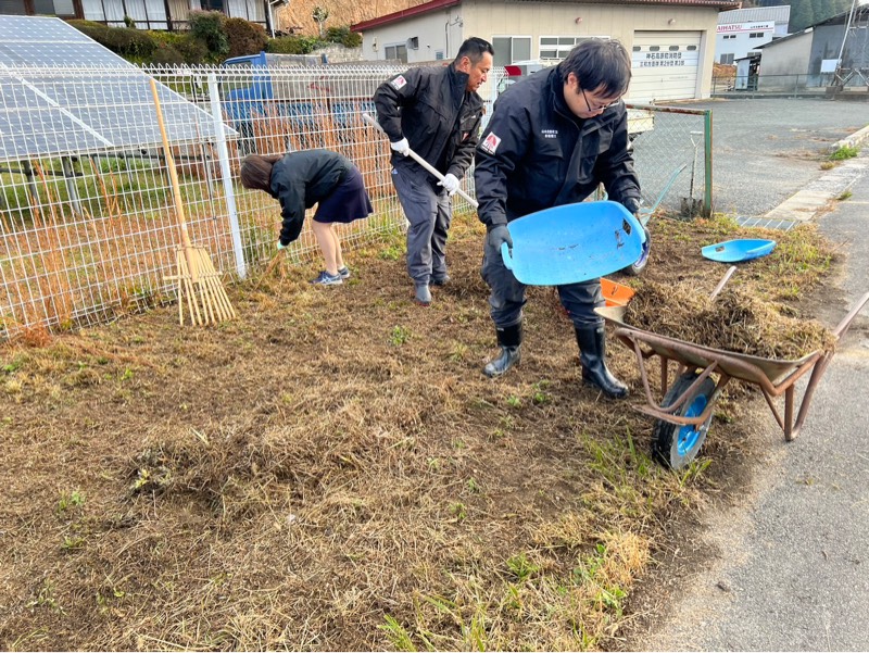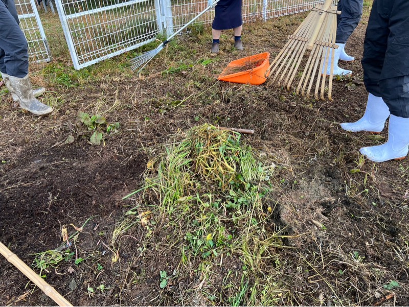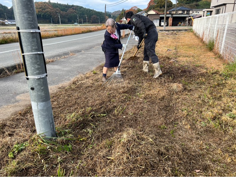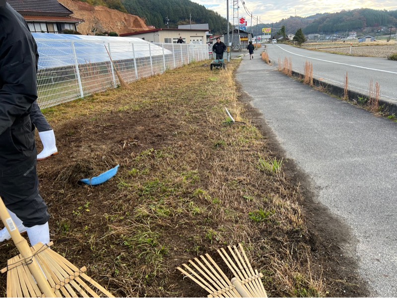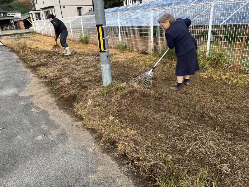 熊手で草を集めながら「ここはだいぶ綺麗になったね。」と声を掛け合う場面も。