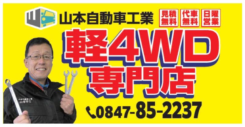 お客様にとって分かりやすく、信頼できる目印となるよう、看板には「軽4WD専門店」の想いを込めています。今後も神石高原町の皆さまにとって、頼りにされるくるま屋であり続けるよう、スタッフ一同努めてまいります。
