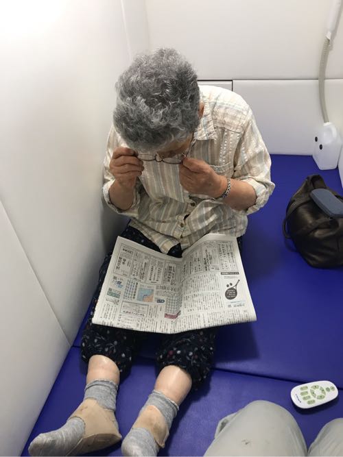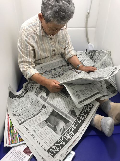 読み物好きの母は、酸素ボックスに新聞を持参。