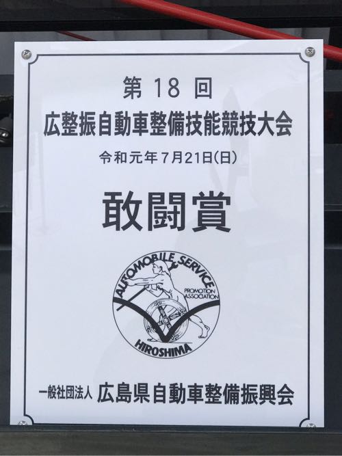 第18回広島県自動車整備振興会 自動車整備技能競技大会に出場しました。結果は敢闘賞でした。