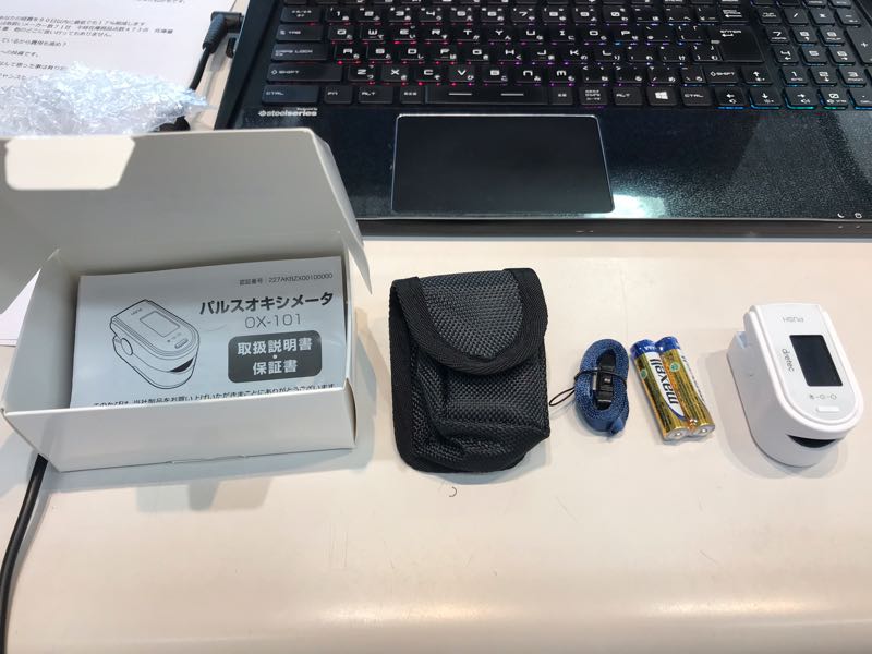 血中の酸素飽和度を測る機器を購入しました 酸素ボックスに入る前後で測ったら、93%から99%に上がりました 2019.8.12