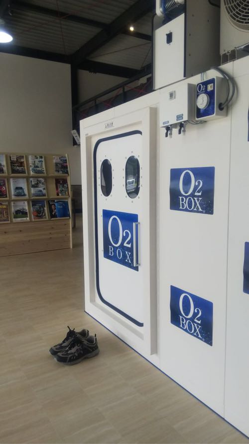 オイル交換でお越しの井上様は、ちょっと試しに入らせて貰おうと、1.3気圧で20分程体験。時間が短いのでどうかな。効いてると嬉しいです。