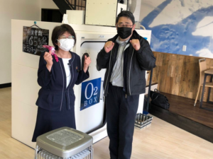 こんな車屋さん初めて 笠岡からGOTO湯っくらのお客様がGOTOオイル交換でご来店 待ち時間に酸素ボックス初体験 2020.10.17