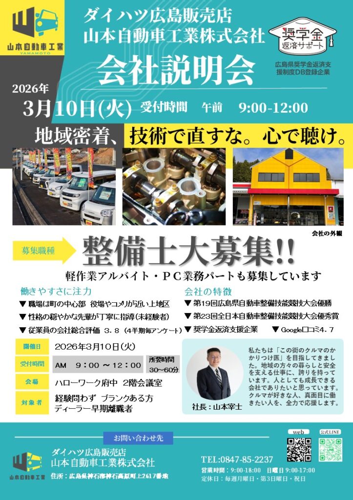 山本自動車工業(ダイハツ広島販売店)現在募集中の求人について