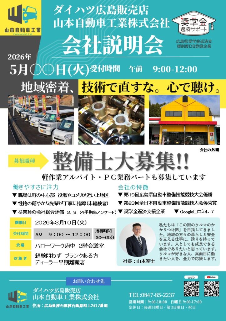 山本自動車工業(ダイハツ広島販売店)現在募集中の求人
