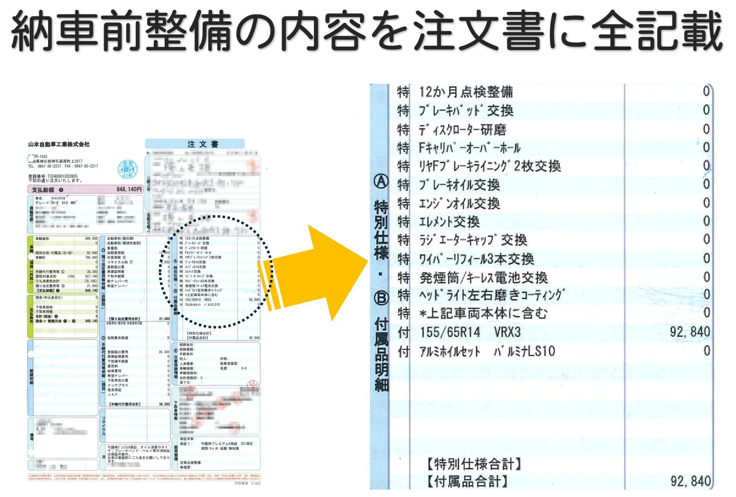 お見積書や注文書にはどんな整備が施されているのか、細かく記載しています。内容について不明な点は安心してお尋ねください。
